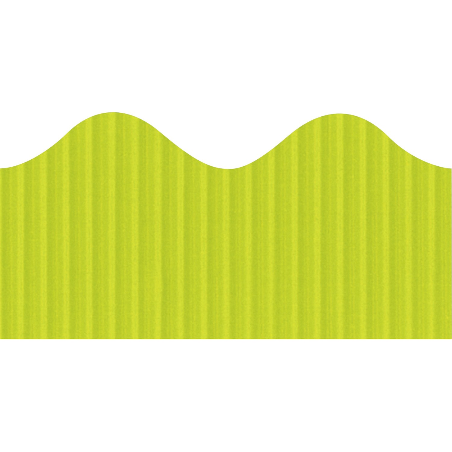 Bordette is the original, pre-scalloped, fade-resistant decorative border. The sturdy corrugate provides a unique three-dimensional appearance on any flat surface. It bends, molds, turns and twists to create unique layered designs. Packaged in a perforated roll, Bordette is easy to separate. It comes in the same Lime color as Fadeless brand paper so it's easy to mix and match colors to create the perfect display. One 50' roll of Bordette will completely edge two 8' x 4' bulletin boards.